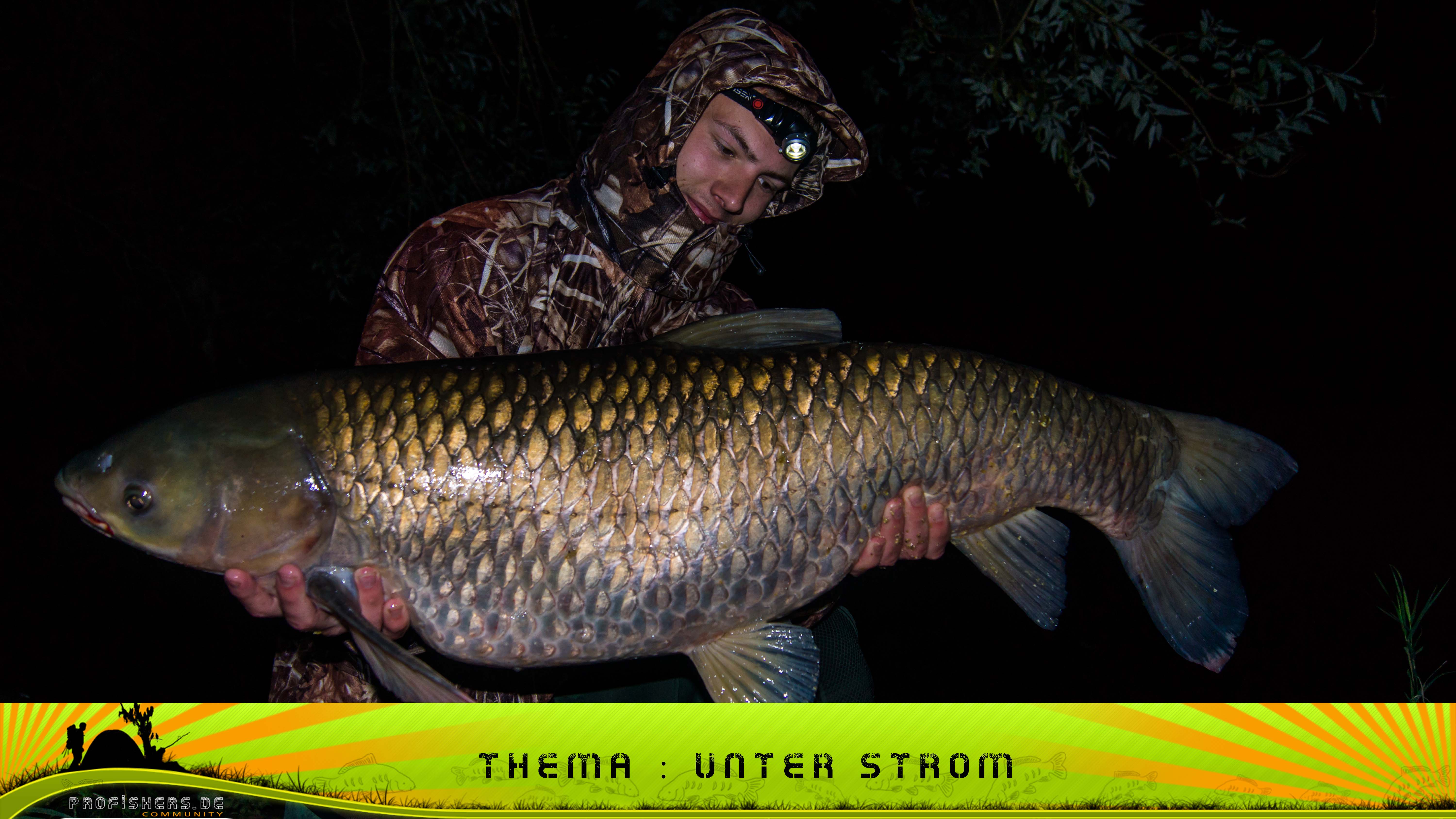 Denn gegen 7 Uhr lief plötzlich eine meiner Ruten ab und nach einem kurzen Drill lag ein 11,3kg schwerer Graser in meinem Kescher.